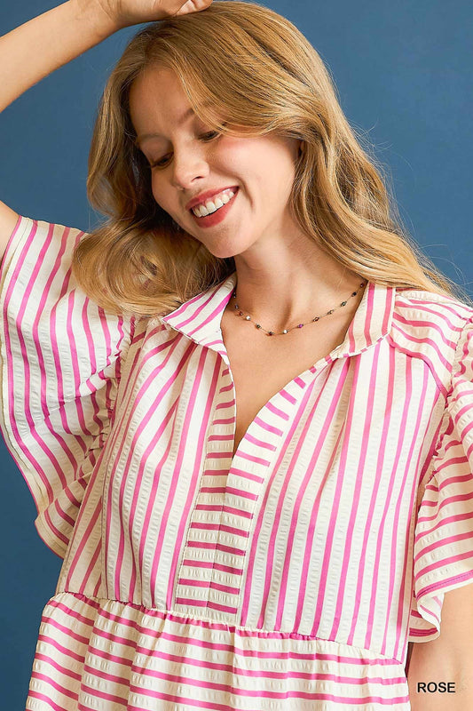 Umgee Rose Striped Flutter Sleeve Babydoll Dress