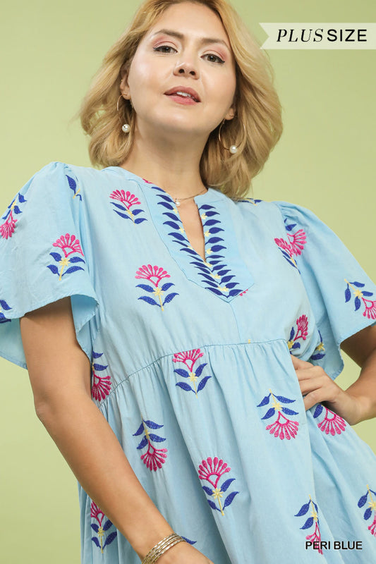 PLUS Umgee Embroidered Tiered Midi Dress – Periwinkle Blue