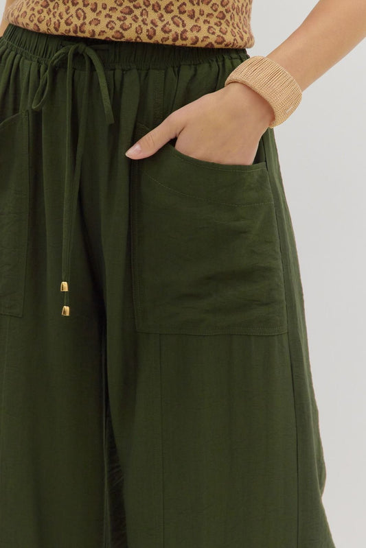 Entro Olive Escape High-Waist Wide-Leg Pants