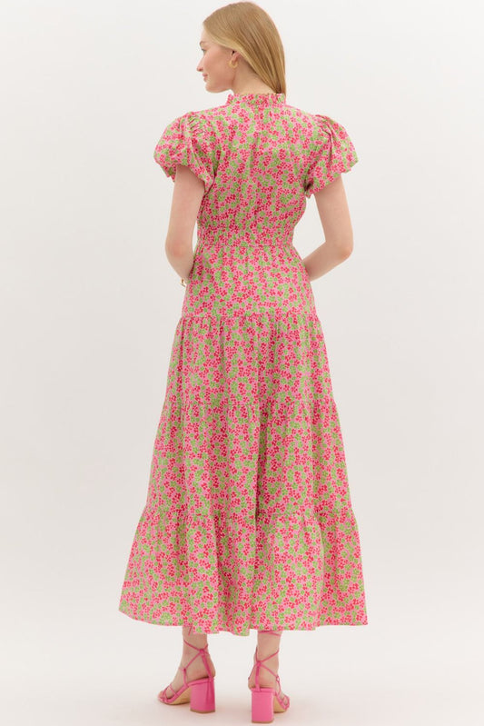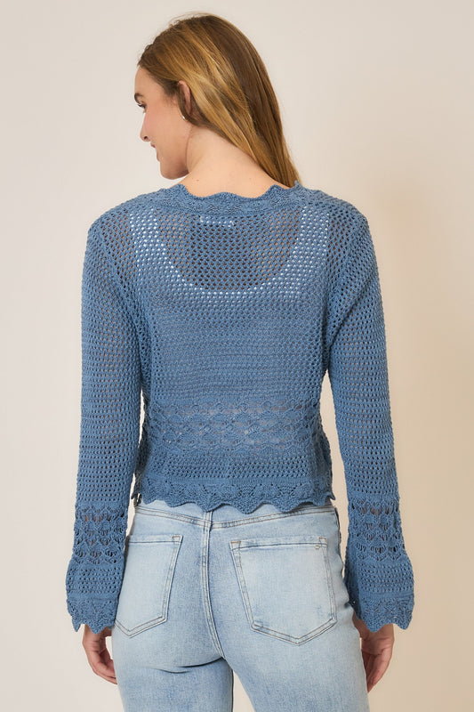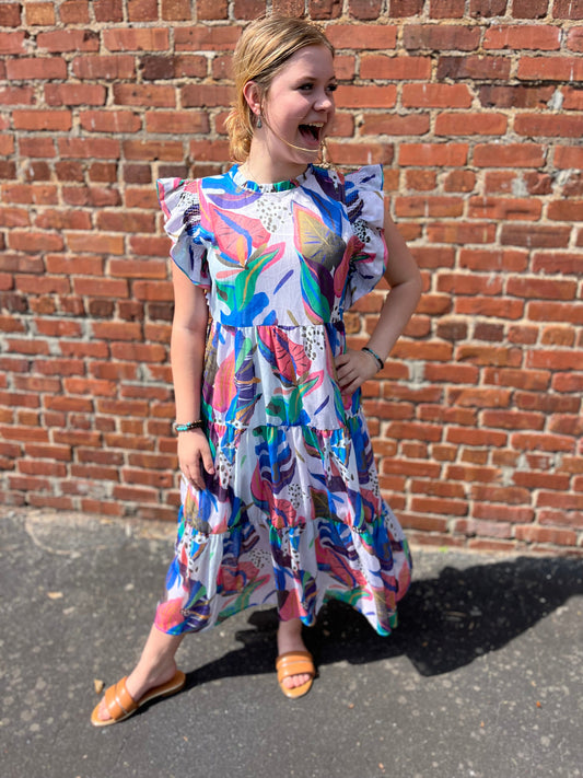 Navy Flutter Sleeve Midi Dress with Lace Trim