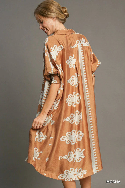 Umgee Mocha Abstract Print Midi Dress