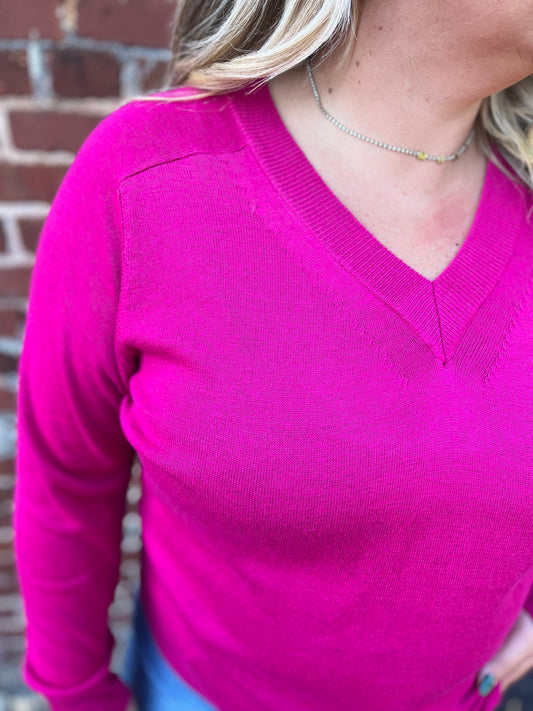 Staccato Magenta Textured V-Neck SweaterRegular price $43.00 USDRegular priceUnit price per-