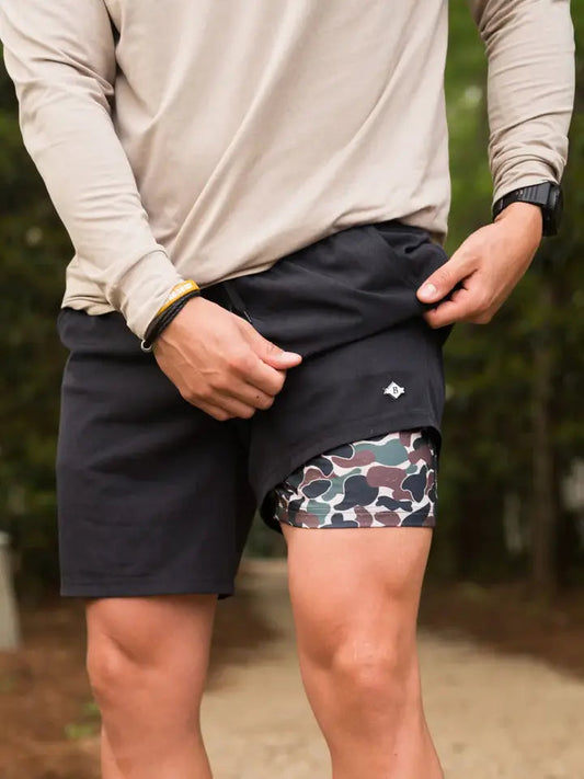 Burlebo Everyday Shorts - Matte Black (Throwback Camo Pocket) 5.5"