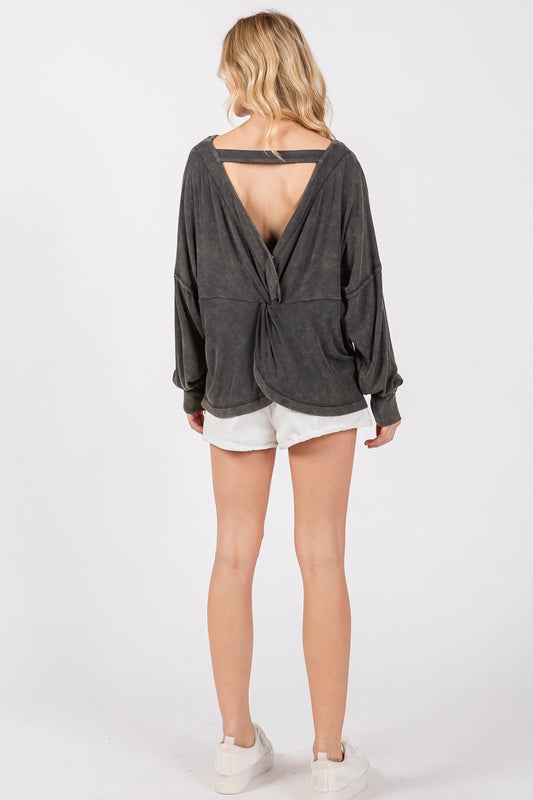 Twist Back Ribbed Long Sleeve Top – Vintage Grey