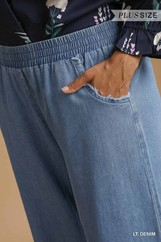 PLUS Umgee Washed Denim Wide-Leg Pants