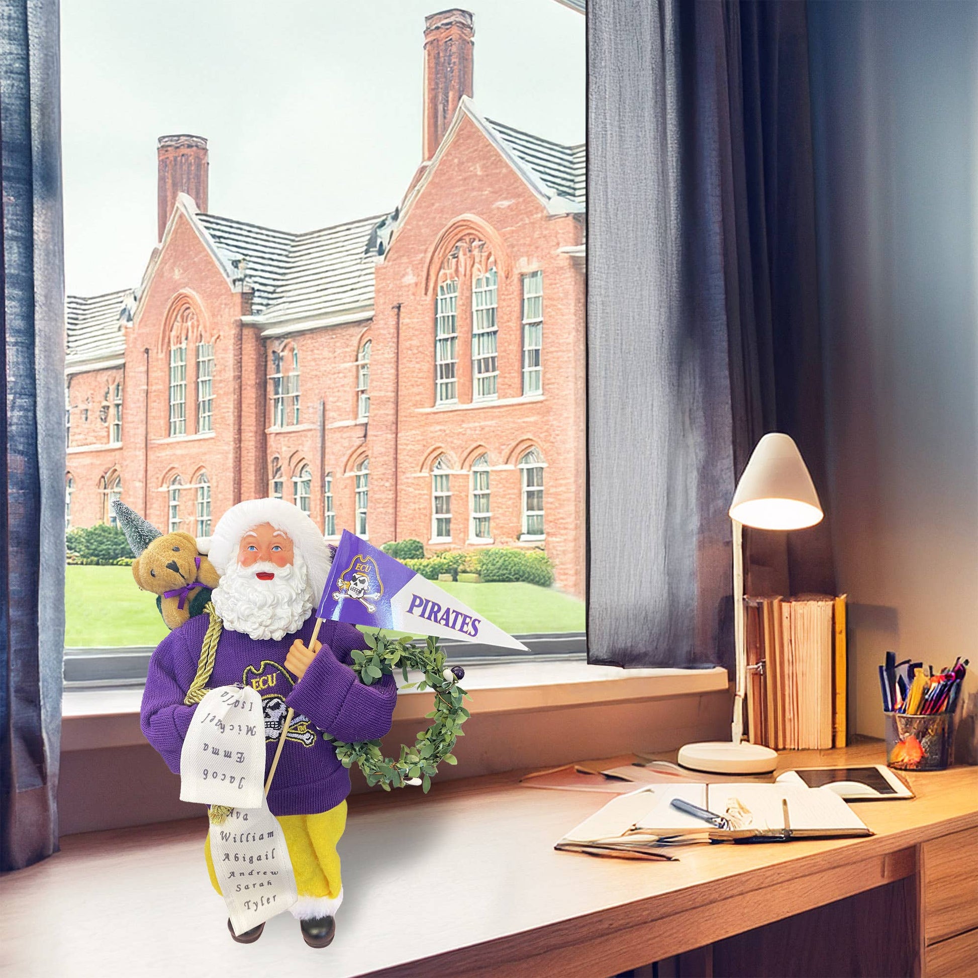 Has your team been good this year? Really good? Well, even if your favorite team didn't take the championship, Santa will make sure you have a perfect season! Wearing his favorite logoed sweater and toting a Christmas list, wreath, school pennant and big sack of goodies, Santa is ready to round up his reindeer and head to your town. Make the holiday season one to remember with this wonderfully handcrafted 12" ECU Proud Santa.