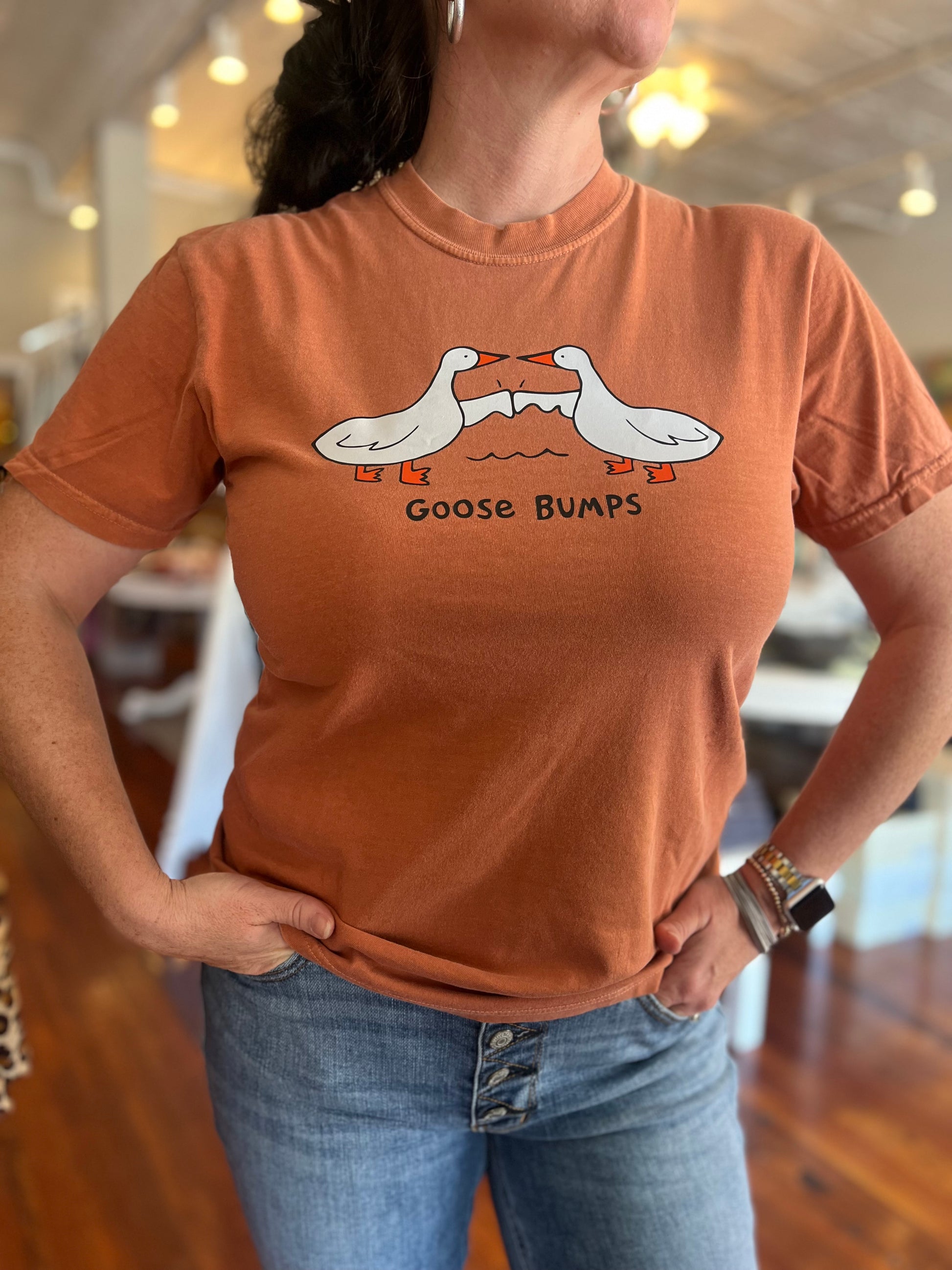 Funny, cute, and a little quirky — the Goose Bumps Graphic Tee is a must-have for anyone who loves meme-inspired humor with a vintage twist. Printed on the premium Comfort Colors 1717 tee, this shirt combines playful style with unbeatable comfort.