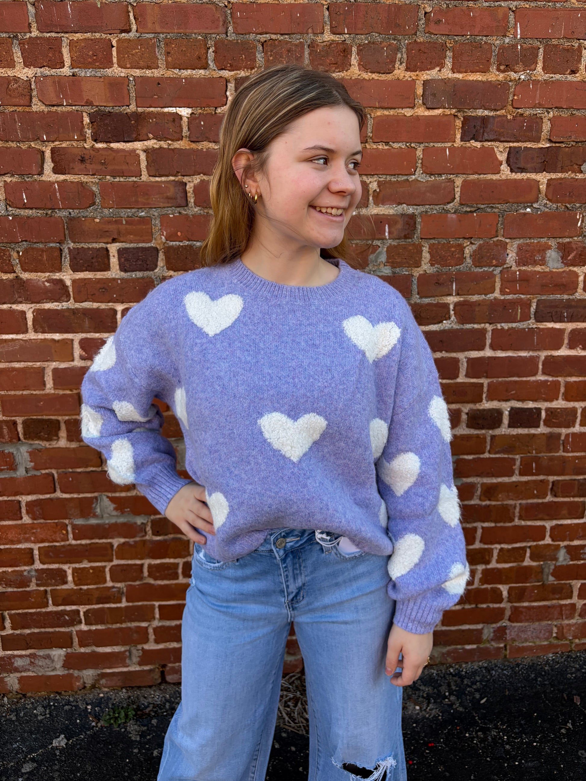 Madelyn Lovely Hearts Crew Neck Sweater – Lavender