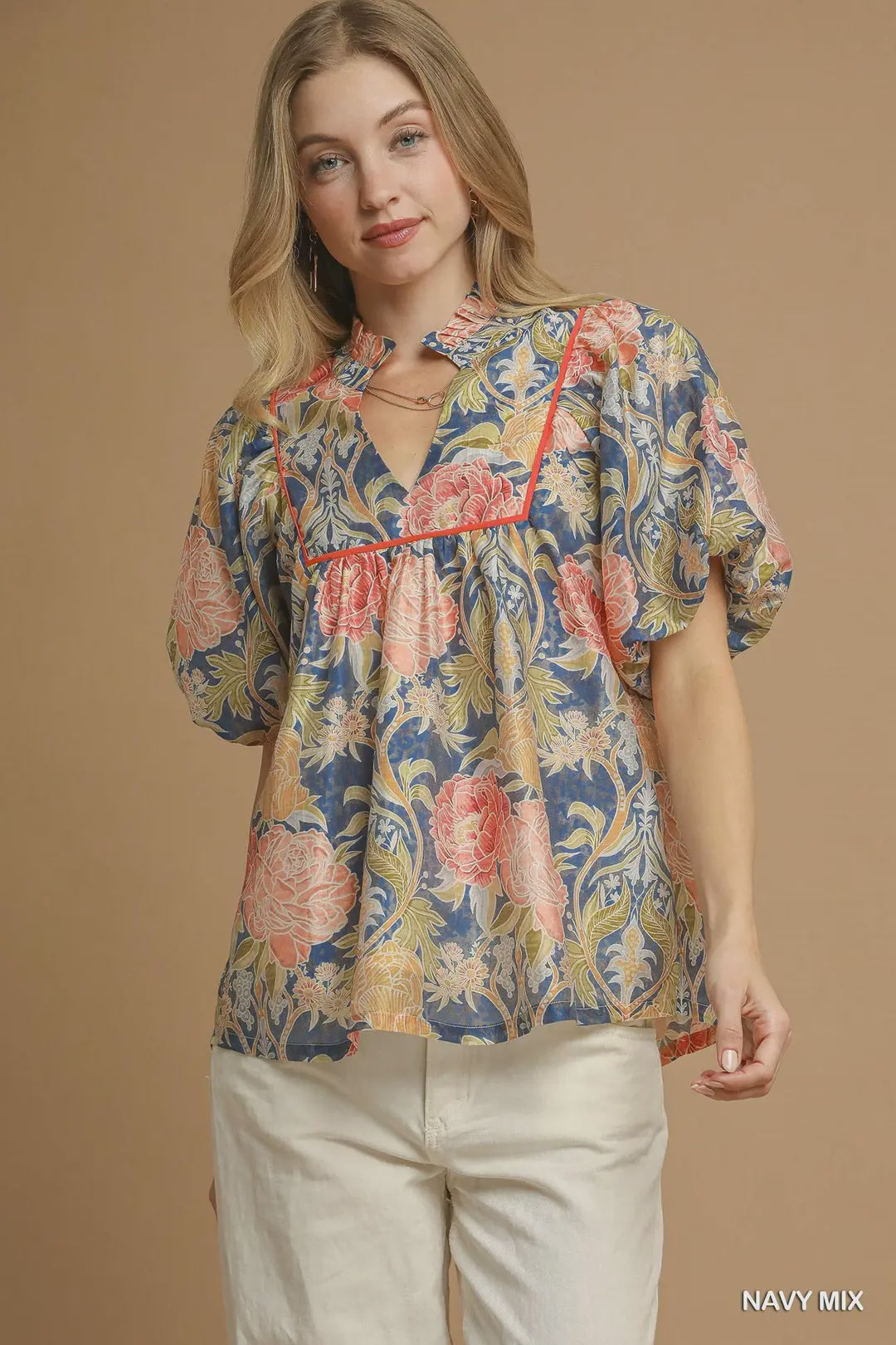Umgee Meadow Bloom Floral Puff Sleeve Blouse