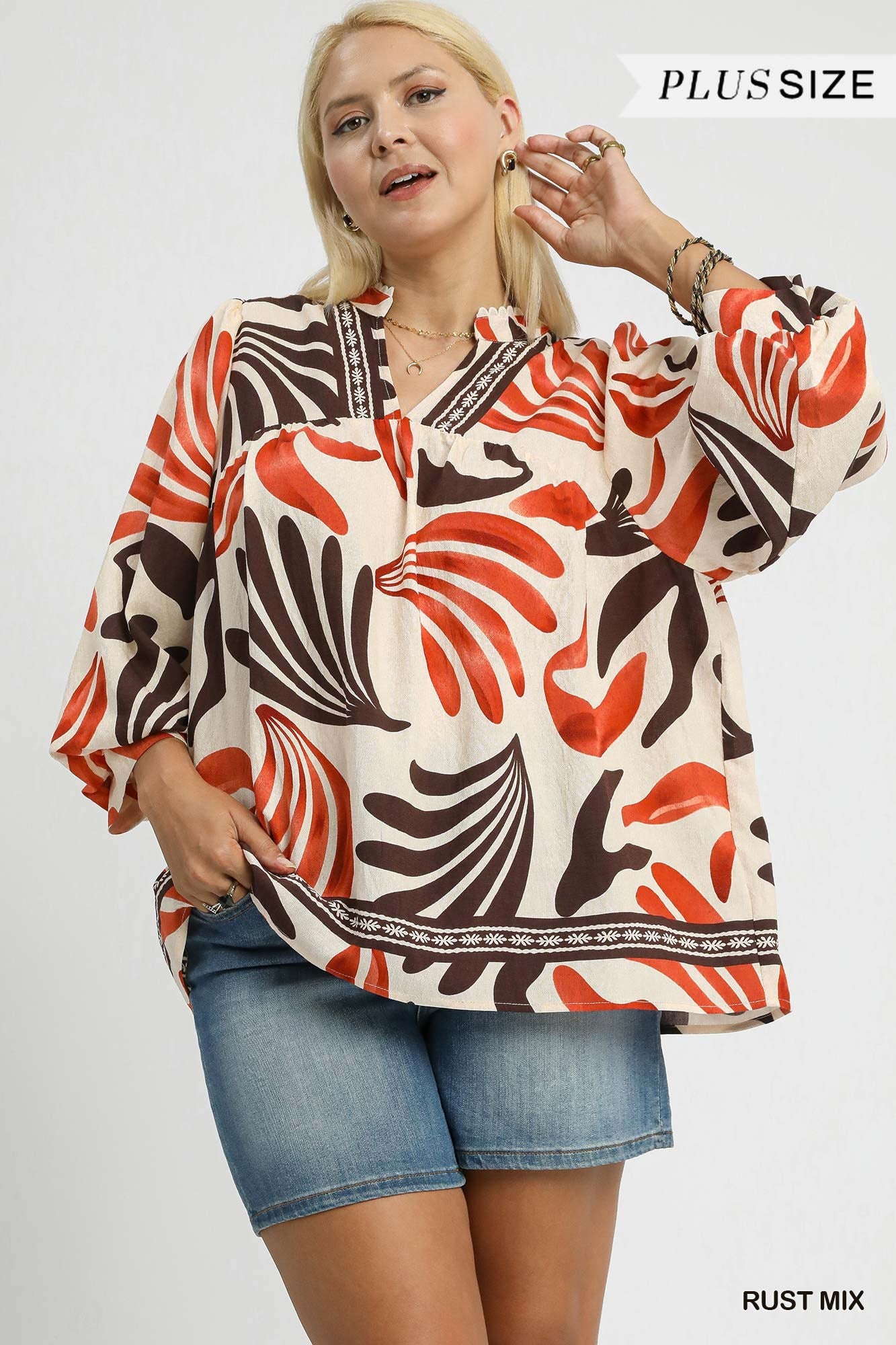 PLUS Umgee Boho Lead Print Blouse - Relaxed & Flowing Tops