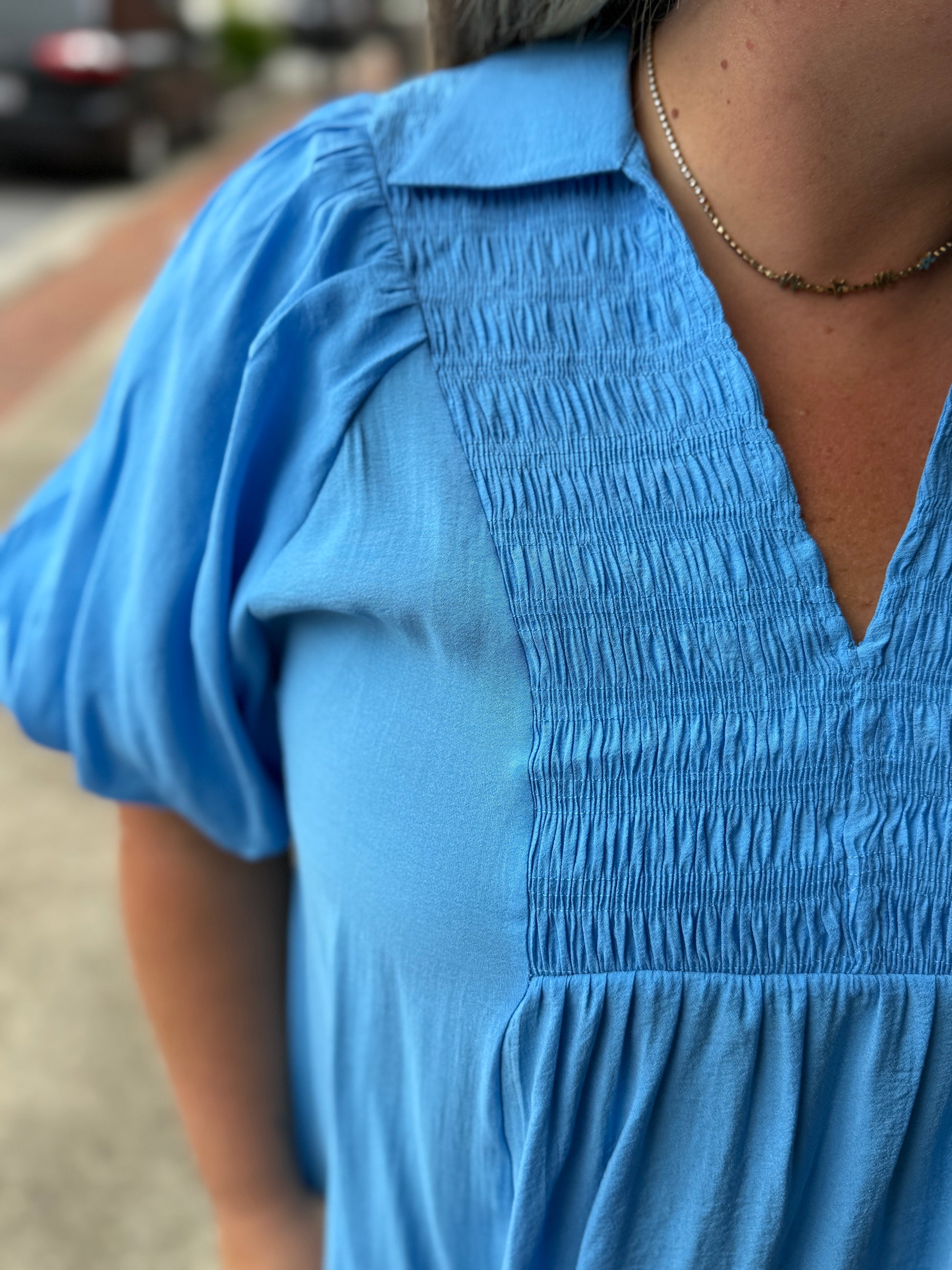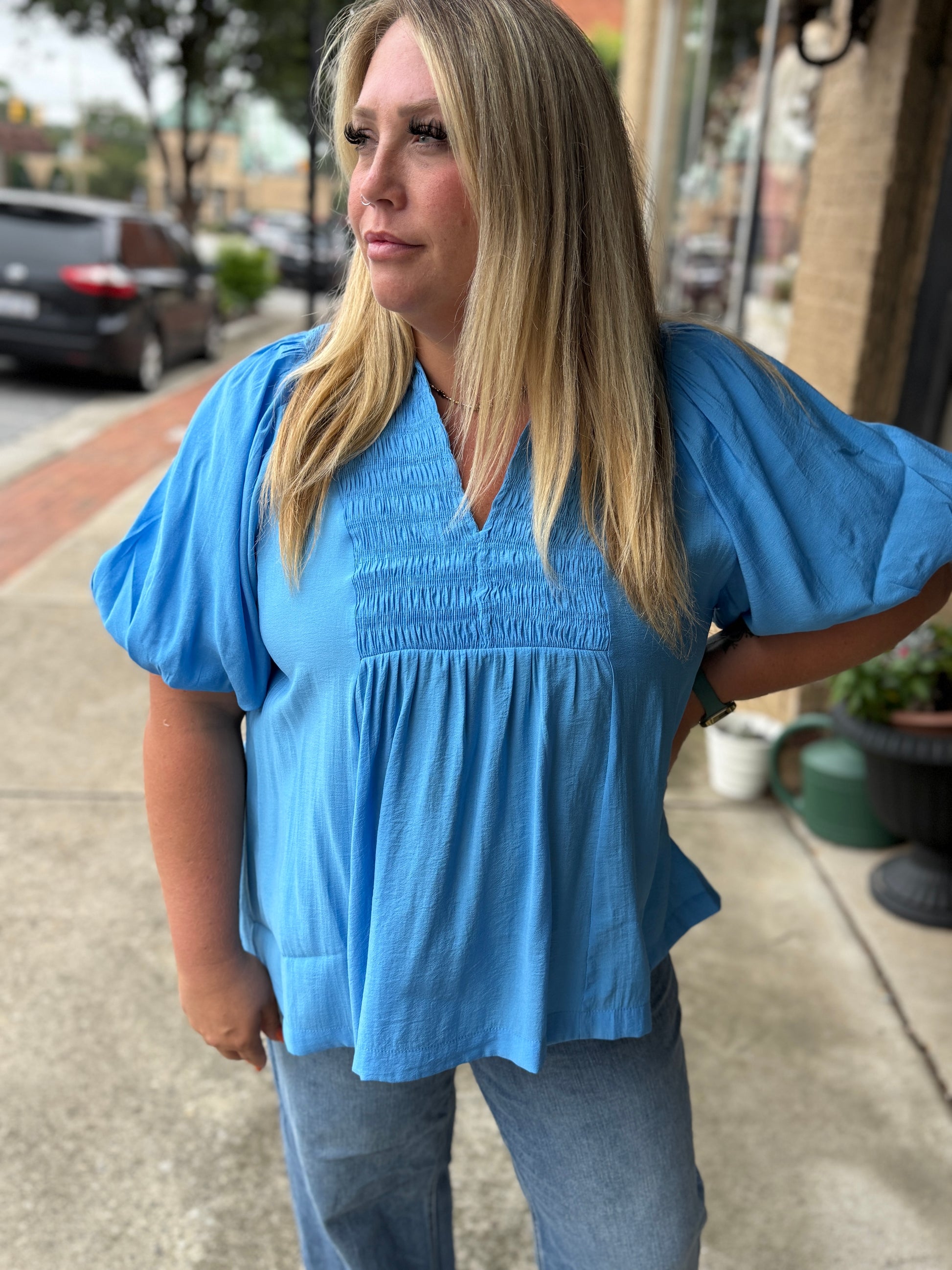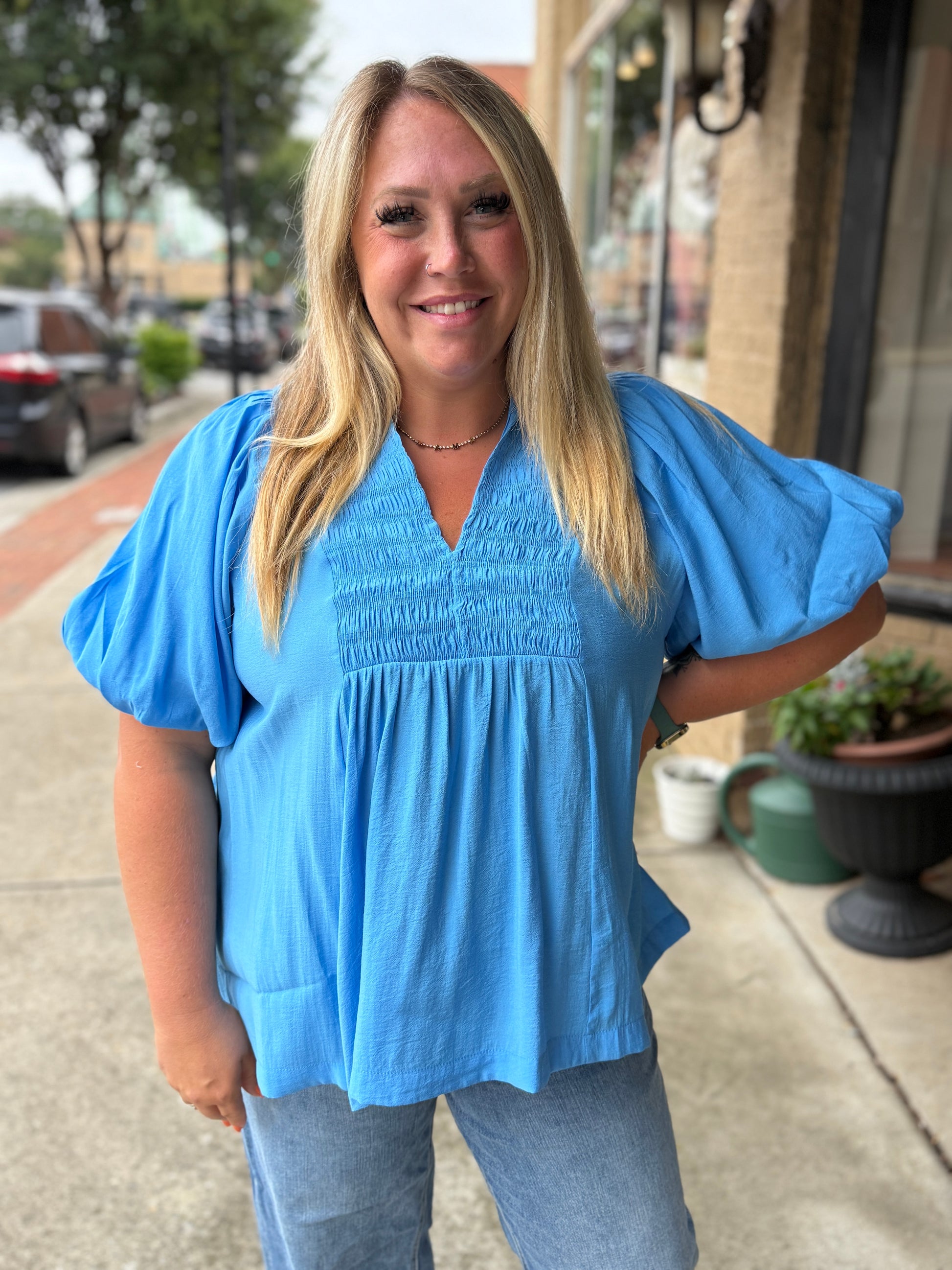 PLUS Umgee Exaggerated Bubble Sleeve Smocked Yoke Top